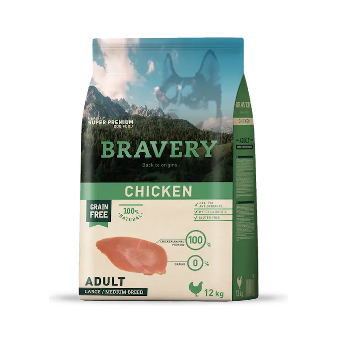 Bravery adult chicken larg/med 12 kg Base