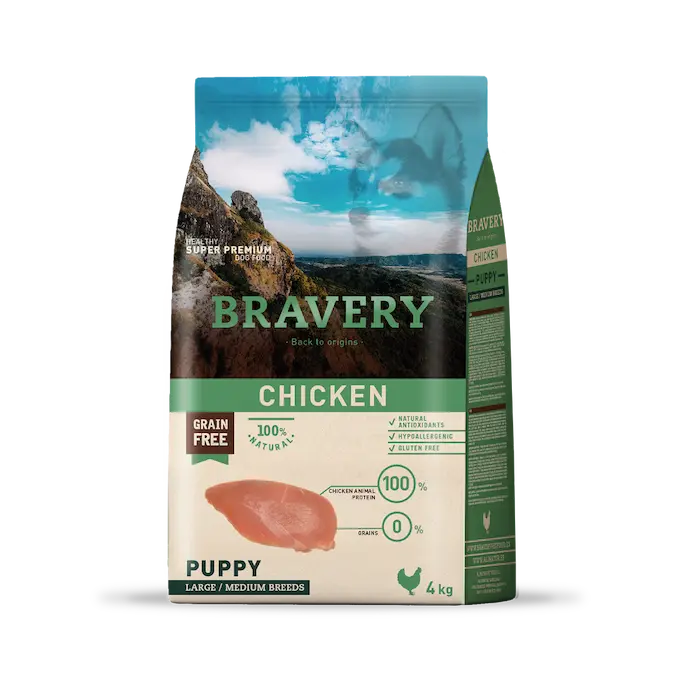Alimento Cachorros Chicken Puppy Large/Med Breeds Bravery 4 Kg Base Marca: Bravery